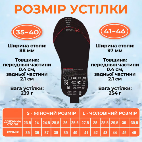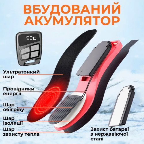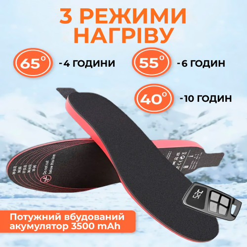 Стельки с подогревом беспроводные с USB термостельки зимние с аккумулятором и пультом универсальные многоразовые электрические стельки для обуви до -50° 41-46 kayfovo ST-13