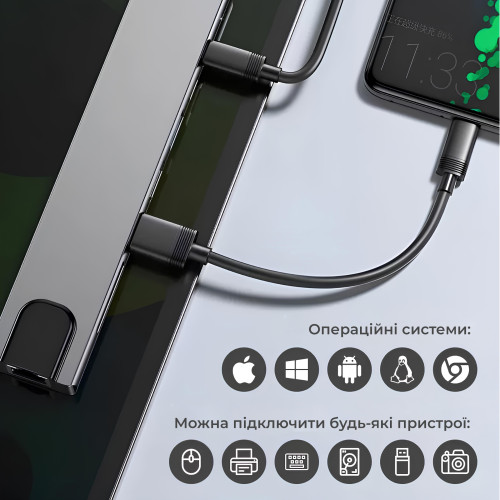 этот USB-концентратор предлагает 1 порт USB 3.0 (суперскорость с передачей данных до 500 МБ/с), 1 порт USB 2.0 (передача данных до 60 МБ/с), 1 порт типа -С.