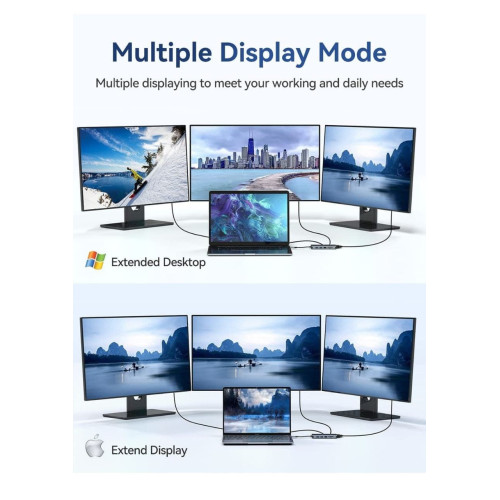 Уникальный адаптер USB-C на HDMI + VGA + AUX 3.5 mm SD/TF Card Reader + USB Hub 3x3.0+Lan+Type-C для Macbook и ноутбуков с интерфейсом USB Type-C объединяет в себе все актуальные, современные порты ввода-вывода информации: