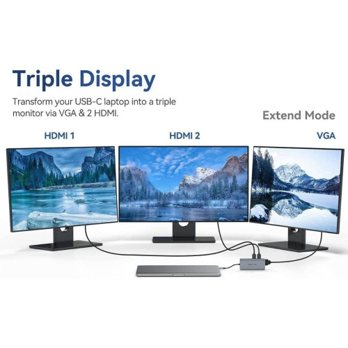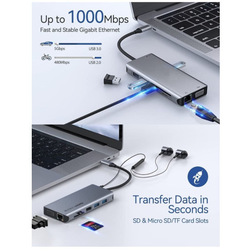 USB хаб Type C 12 в 1 HDMI VGA AUX 3.5 mm SD/TF Card Reader USB Hub 3x3.0 USB C Charging Ethernet LAN RJ 45 PAVLYSH H-9