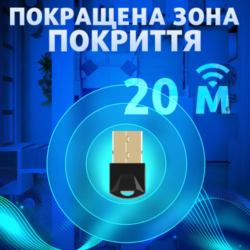 Адаптер Bluetooth v5.3 также может работать как передатчик и приёмник для подключения Bluetooth-мыши и клавиатуры, освобождая вас от ограничений по расстоянию.