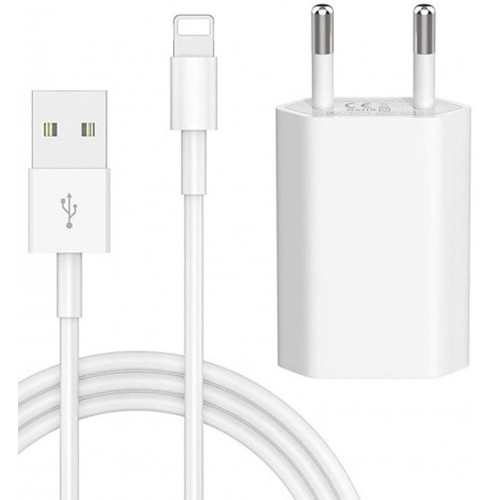 Зарядный комплект для Apple устройств - Сетевой адаптер 5W + метровый кабель зарядки USB to Lightning (Белый)