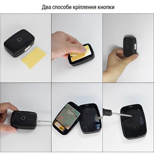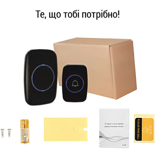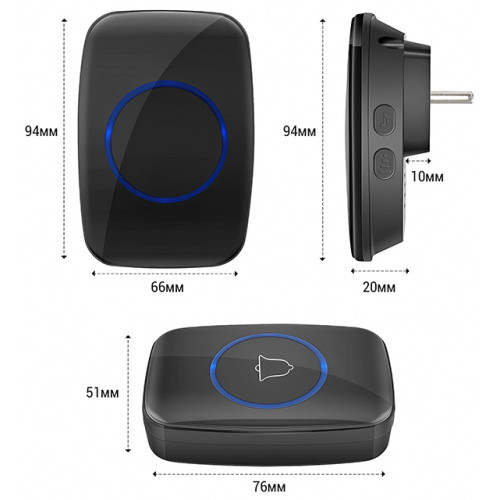 Простота в установке - Просто подключите звонок в розетку, установите кнопку с помощью прилагаемой двухсторонней ленты или винтов. Рабочее напряжение звонка: 110 / 220 В.