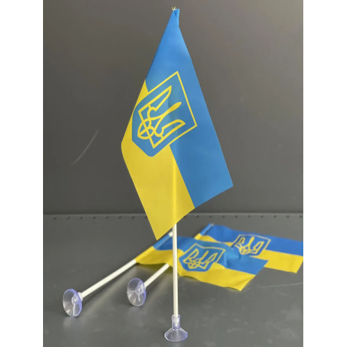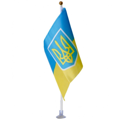 Флаг Украины на липучке 20х15 см сувенирный с гербом, на ручке и присоской на окно на автомобиль аксессуар Kayfovo K20-15