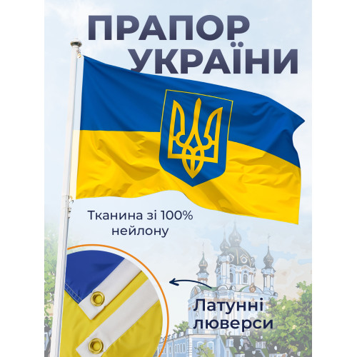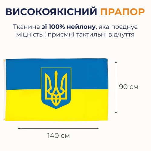Флаг Украины с гербом ручной 140х90 см украинский национальный флаг Украины Kayfovo K140-90-1
