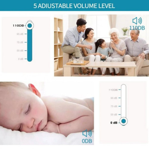 Звонок имеет на выбор 60 мелодий и 5 уровней громкости от 0 до 110 дБ (подходит для слабослышащих)
