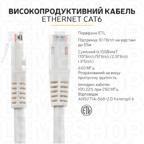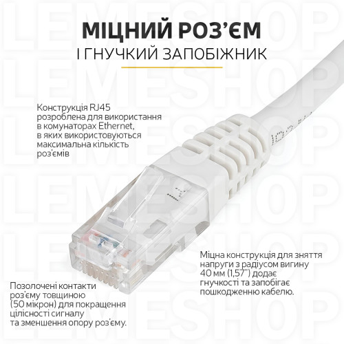 Патч-корд сетевой кабель Интернет gigabit ethernet Cat 6 RJ45 Lan Cable 1 м Kayfovo LC-6 Белый