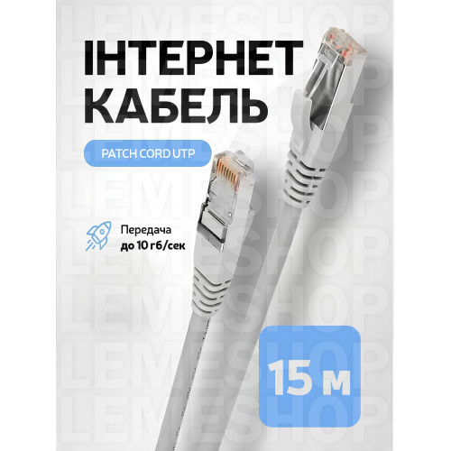 Патч-корд сетевой кабель Интернет gigabit ethernet Cat 6 RJ45 Lan Cable 15 м Kayfovo LC-6 Белый