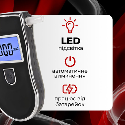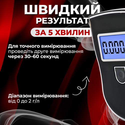 Пользоваться алкотестером в любое время суток благодаря удобной подсветке.