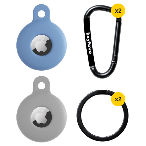 Чехол брелок для Apple AirTag с карабином Silicone Blue, Grey Kayfovo BG2 Комплект из 2 шт