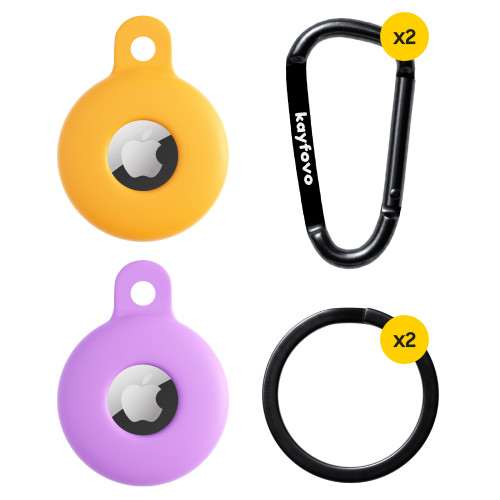 Чехол брелок для Apple AirTag с карабином Silicone Purple, Yellow Kayfovo PY2 Комплект из 2 шт