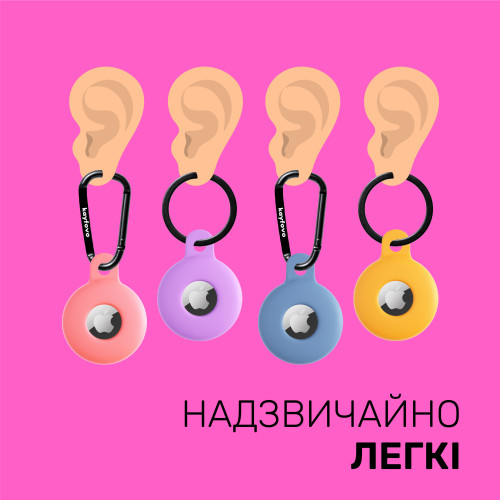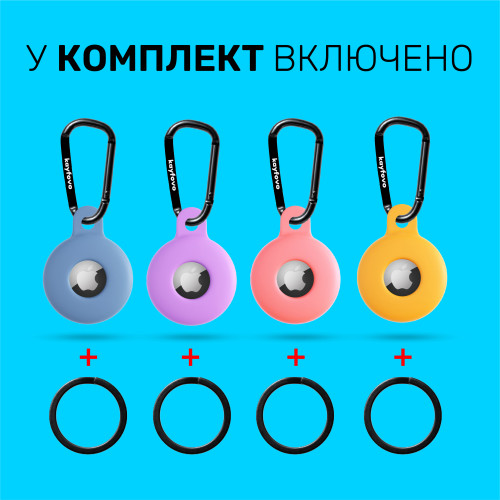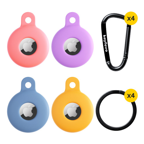 Чехол брелок для Apple AirTag с карабином Pink, Light-Blue, Yellow, Purple Комплект из 4 шт Kayfovo PLBYP4