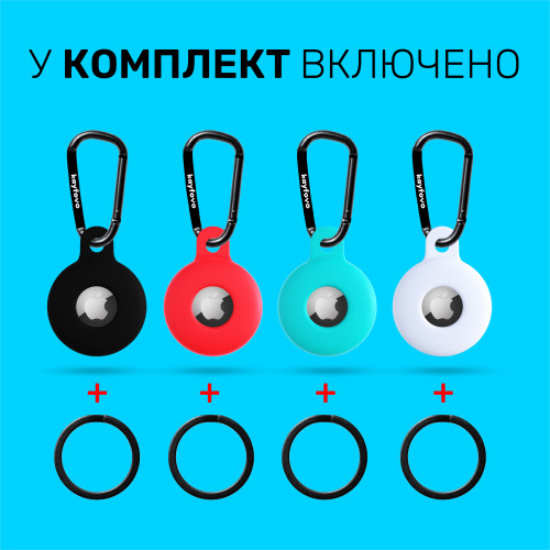 Чехол брелок для Apple AirTag с карабином White, Green, Red, Black Комплект из 4 шт Kayfovo WGRB4