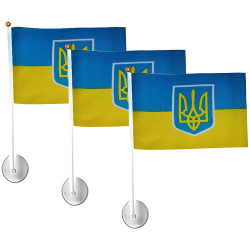 Флаг Украины на липучке 20х15 см сувенирный с гербом, на ручке и присоской Комплект из 3 шт. K20-15-3