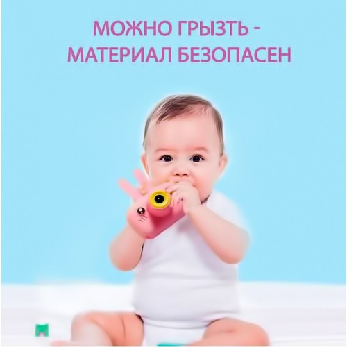 • Фотоаппарат легкий, имеет оригинальный и привлекательный внешний вид, который обязательно привлечет внимание ребенка и он легко помещается в маленькой детской ручке. Ударопрочный корпус в комплекте с ушастым чехлом делают игрушку безопасной и долговечной. Сам материал, с которого сделан фотоаппарат, не токсичный, даже если ваш малыш решит его покусать.