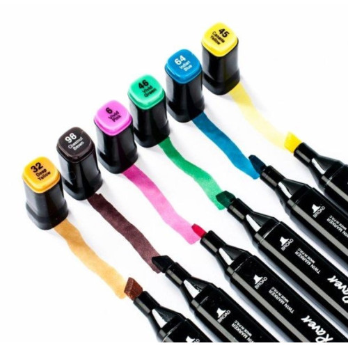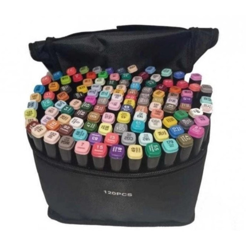 Маркеры для рисования и скетчей в черном тканевом футляре. Двусторонние, на спиртовой основе.
