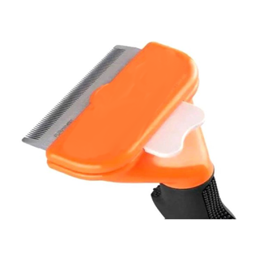 Дешеддер разработан с учетом особенностей животных, поэтому его применение абсолютно безопасно и комфортно. Специальная кнопка на инструменте легко снимает скопившуюся шерсть, а металлические зубчики аккуратно скатывают ее с подшерстка.