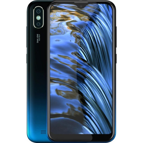 Выполненный из пластмассы Leagoo M12 не отличается чем-то особенным от других девайсов. Он компактный и удобный. С ним легко работать, можно положить в небольшой карман. Тыльная сторона имеет градиентную расцветку, что привлекает внимание. Здесь находится основной сдвоенный модуль камеры и логотип бренда. На лицевой стороне находится дисплей с широкими рамками и каплевидным врезом для фронталки. Купить смартфон можно в различных цветах.