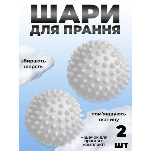 Мячики для стирки шарики с мешком для стирки белья пуховиков и другой одежды Kayfovo BALLS (KB2W) 2 шт белый
