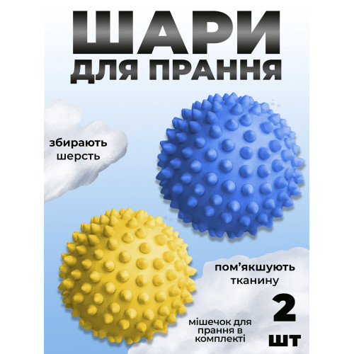 Мячики для стирки шарики с мешком для стирки белья пуховиков и другой одежды Kayfovo BALLS (KB2BY) 2 шт Blue-Yellow