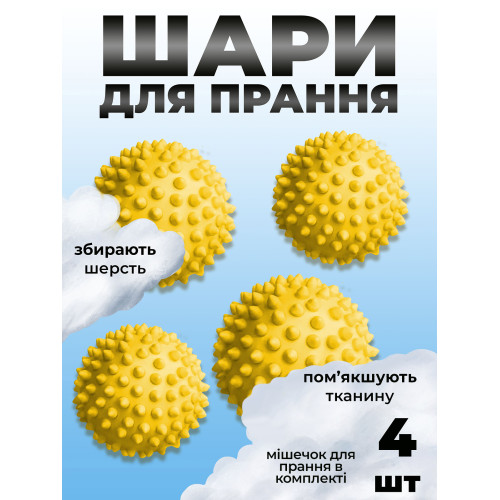 Мячики для стирки шарики с мешком для стирки белья пуховиков и другой одежды Kayfovo BALLS (KB4Y) 4 шт желтый