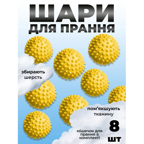 Мячики для стирки шарики с мешком для стирки белья пуховиков и другой одежды Kayfovo BALLS (KB8Y) 8 шт желтый