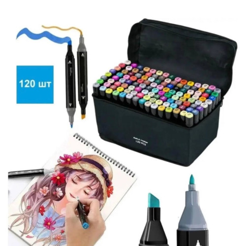 Данные маркеры созданы для тех, кто увлечен рисованием и каллиграфией, любит создавать комиксы и красочные эскизы. В наборе 120 маркера разных цветов. Корпус пластиковый гладкий. Колпачки плотно закрываются.
